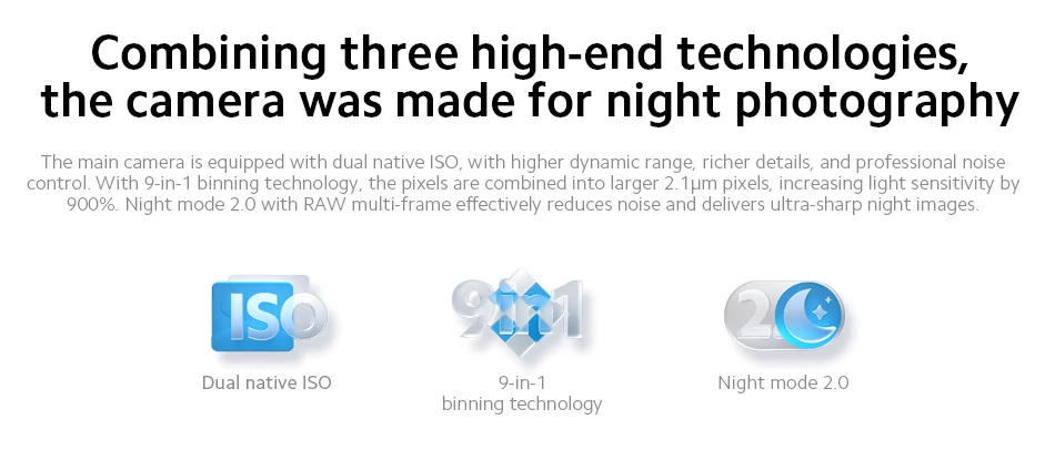 Dual native ISO | 9-in-1binning технология | Ночной режим 2,0