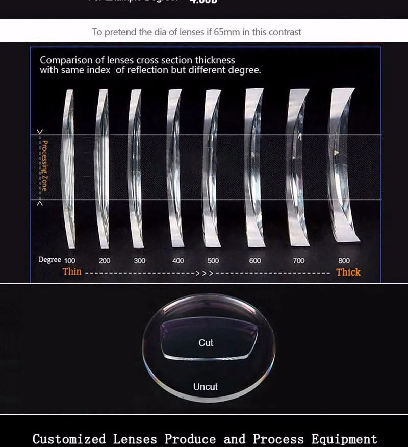 Оптические асферические линзы для близорукости, Индекс 1,56 1,60 1,...