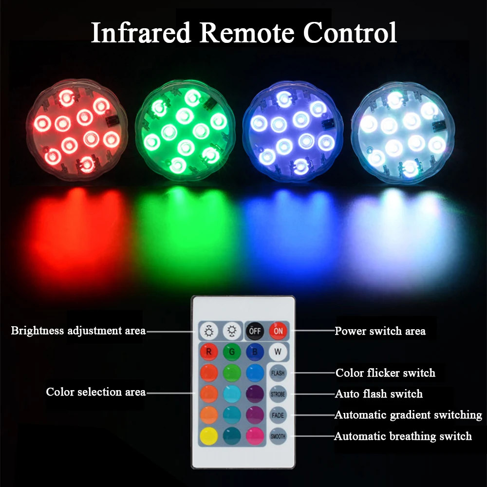 10 светодиодный Дистанционное управление погружной светильник Батар...