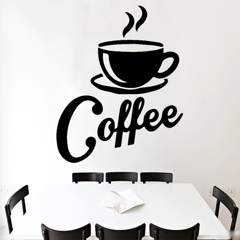 Наклейка на стену для кафе, кофейная чашка, Виниловая наклейка, кухонный домашний декор, кофейня, окна, украшение для ресторана, искусство, съемная роспись