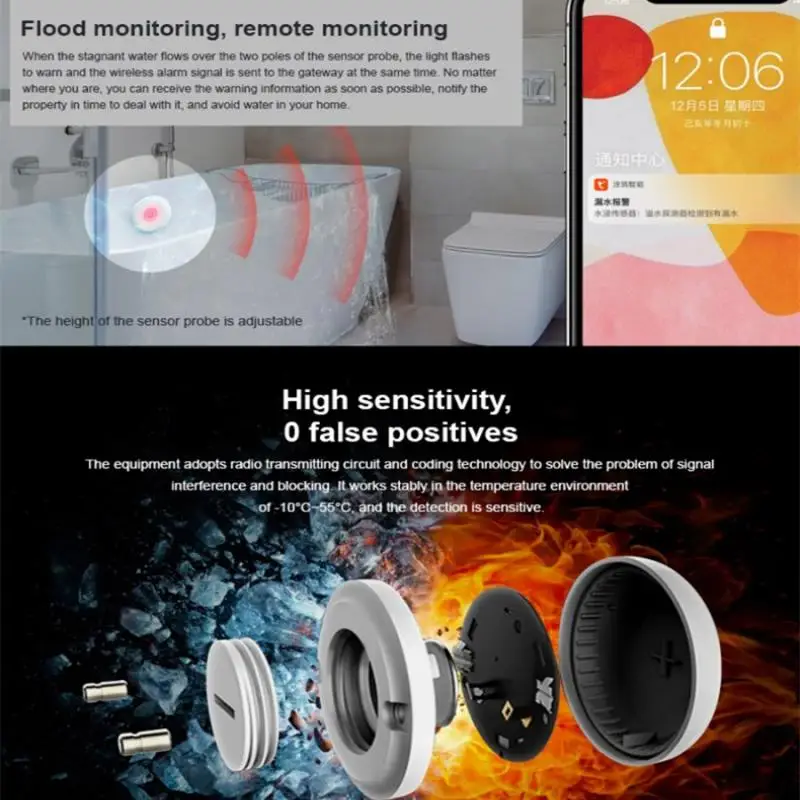 Больше приложений. Этот детектор утечки воды wrook хорошо в доме, отеле, магазине, офисе и квартире. Чтобы защитить каждый момент и везде.