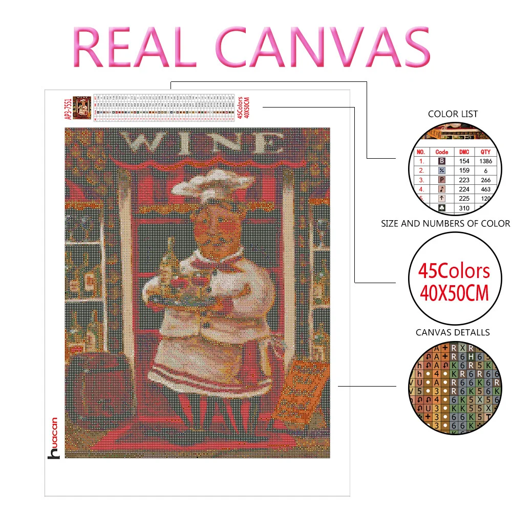 Алмазная вышивка Huacan, картина шеф-повара, полная выкладка, мозаика, мультяшный портрет, вышивка крестиком, картины для алмазной живописи