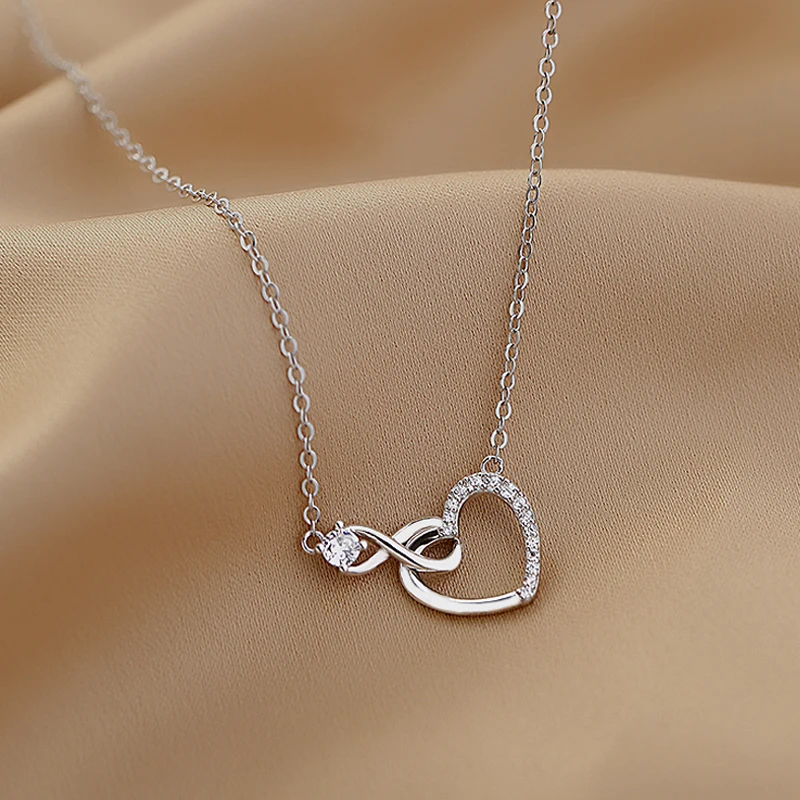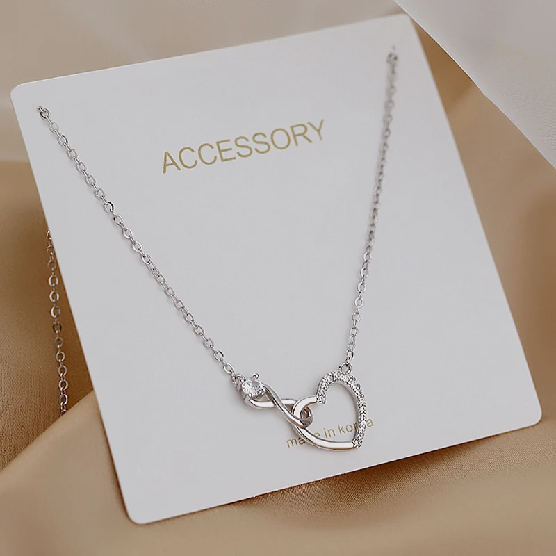 Ожерелье женское из серебра 925 пробы с цирконом и полым сердцем