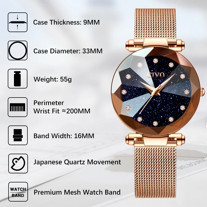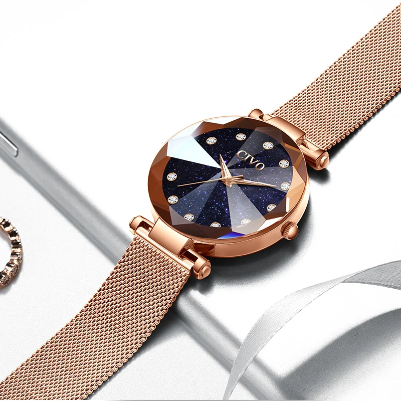Модные женские повседневные водонепроницаемые аналоговые кварцевые часы CIVO с сетчатым браслетом из нержавеющей стали, женские часы 8064, оптовая цена