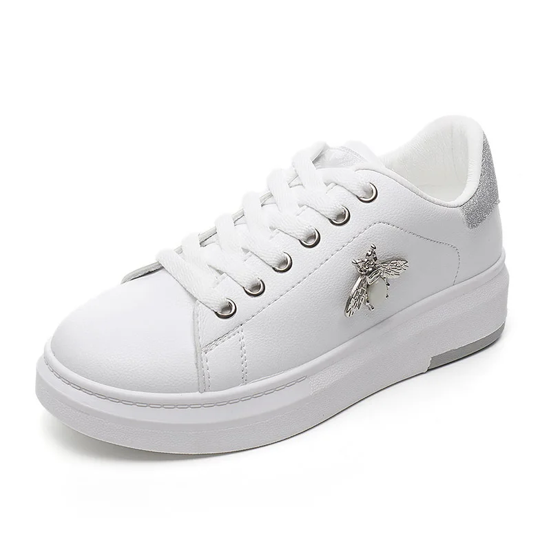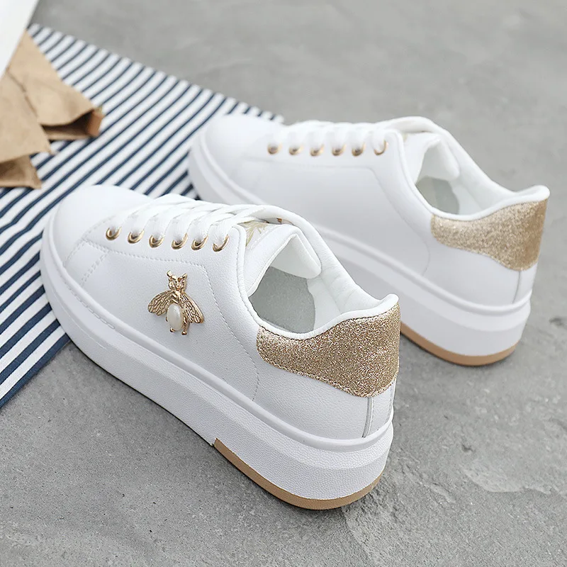 Женские кроссовки с пчелами, белые весенние кроссовки на платформе, модная женская обувь в стиле пэчворк
