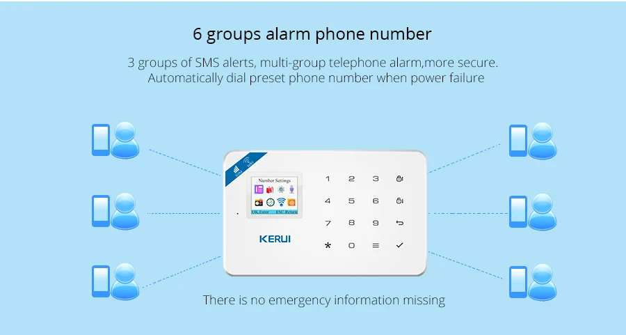 6 групп sms-оповещений, многогрупповая телефонная сигнализация, более безопасная. Автоматически Наберите предустановленный номер телефона при отключении питания.