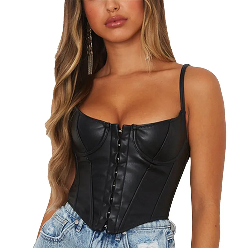 2022 летний женский мото-топ из искусственной кожи, сексуальный жилет для девушек, модный простой топ с нагрудными чашечками, новый Приталенный жилет с U-образным вырезом для дам