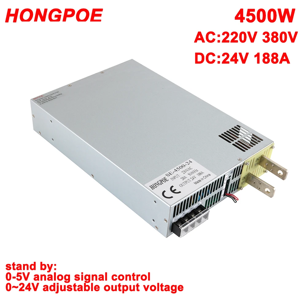 24V источник питания 0-24V регулируемая мощность 0-5V с управлением аналогового сигнала 220V 380V AC к DC 24V 188A Высокая мощность трансформатора 4500W
