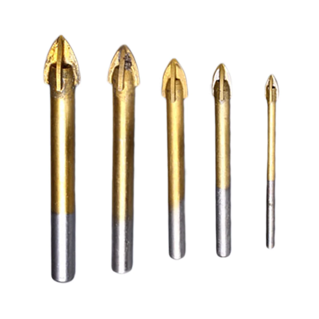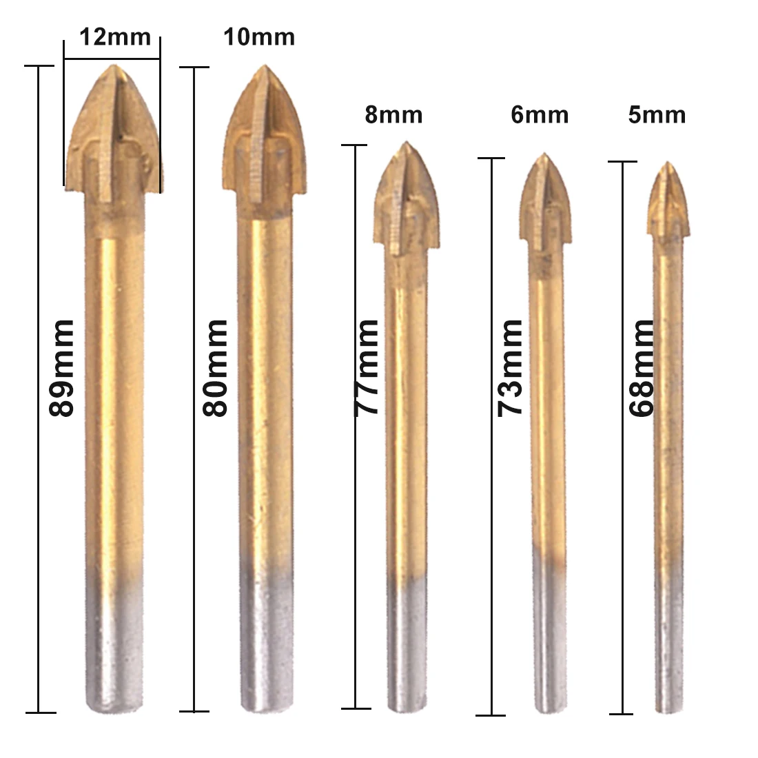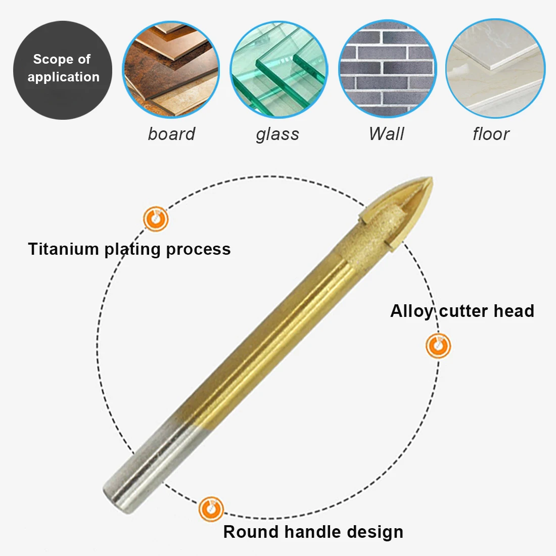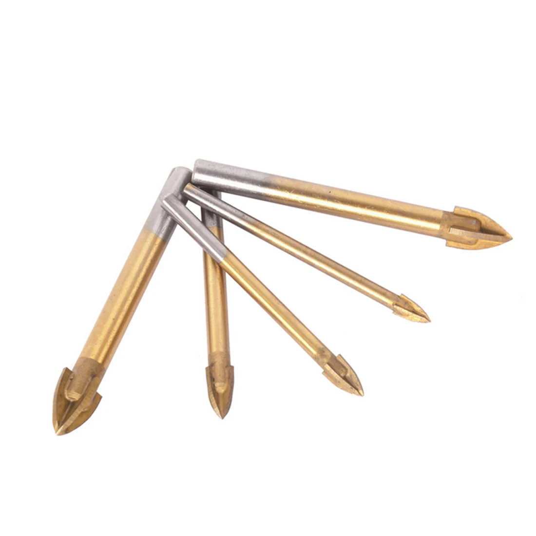 5 мм6 мм8 мм10 мм12 мм сверло с титановым покрытием для керамической плитки, стекла, мрамора, карбида вольфрама, крестовая головка копья, Круглый хвостовик