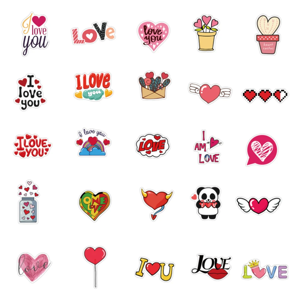 50 шт., наклейки на тему Дня Святого Валентина Я тебя люблю
