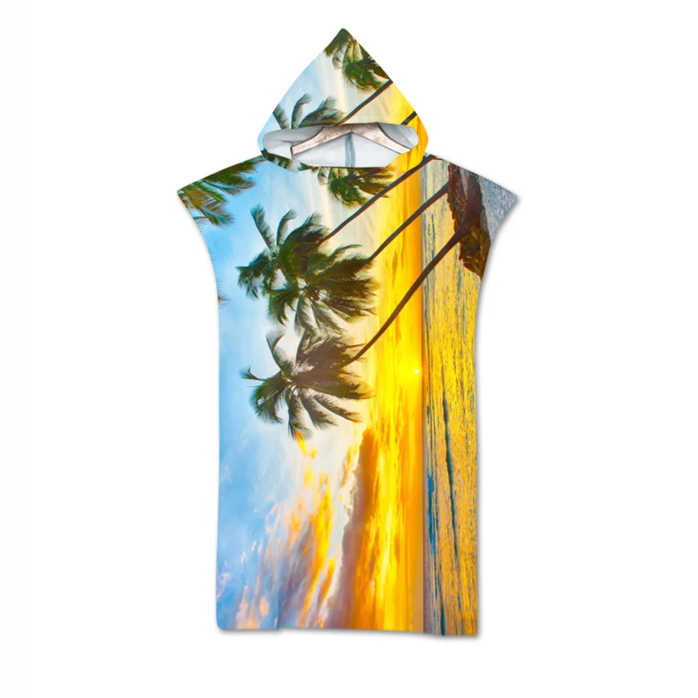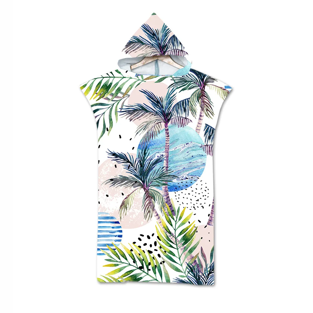 Новое пляжное полотенце из микрофибры с принтом пальмы и капюшоном для купания, пляжный халат унисекс для серфинга, пляжная одежда