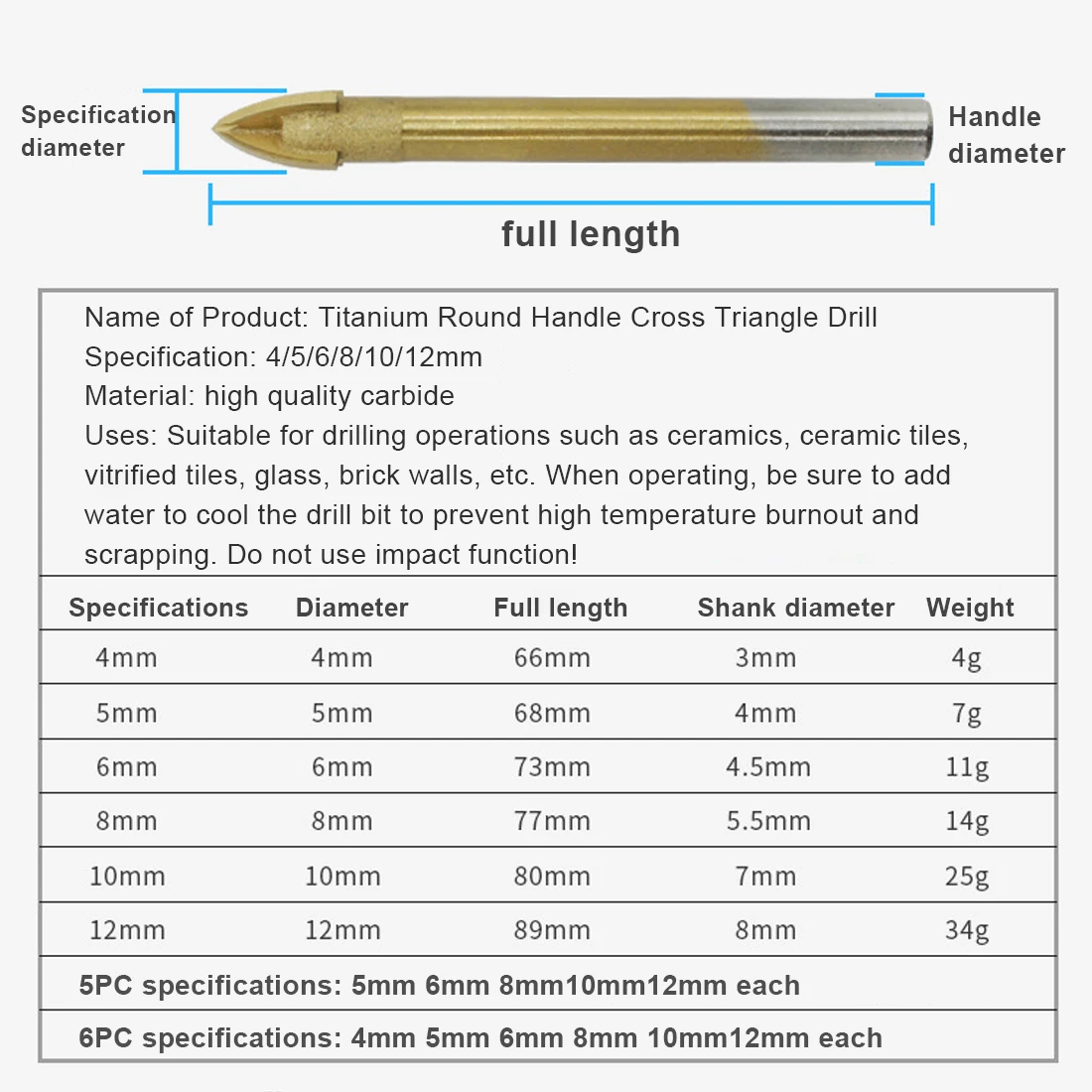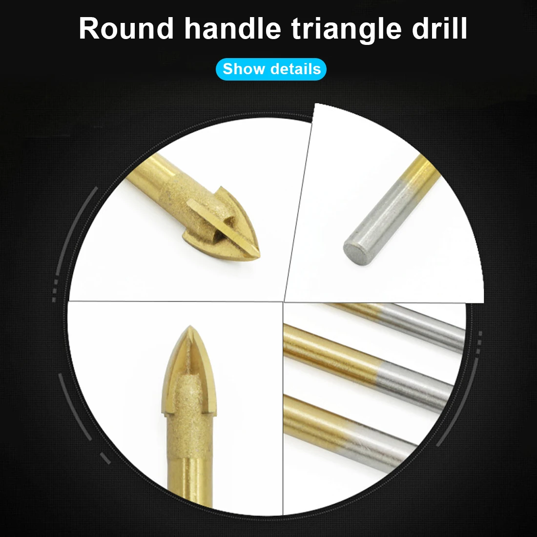 Сверло с крестообразной головкой из карбида вольфрама с титановым покрытием для керамической плитки, стекла, мрамора, Круглый хвостовик 5 мм6 мм8 мм10 мм12 мм