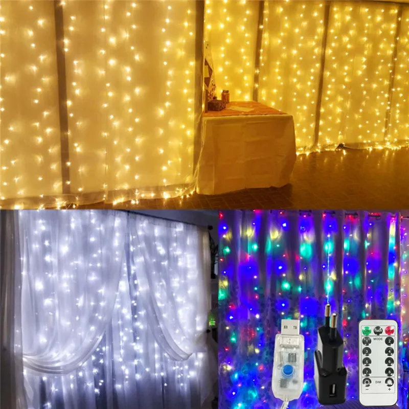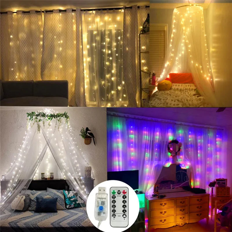 Светодиодный Шторы гирлянда на 3 м окна USB шнура светильник Фея светильник дистанционного Управление новогоднее; Рождественское украшение 5z
