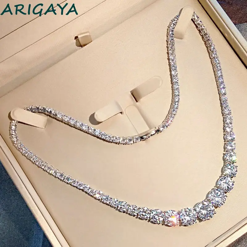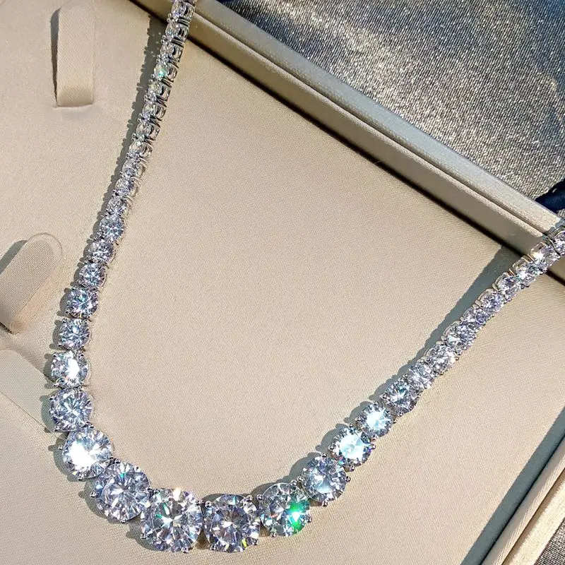 Ожерелье из настоящего серебра 925 пробы с имитацией муассанита