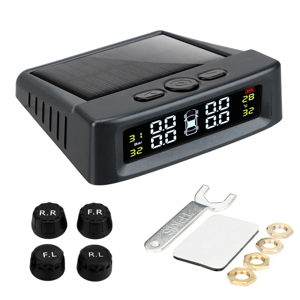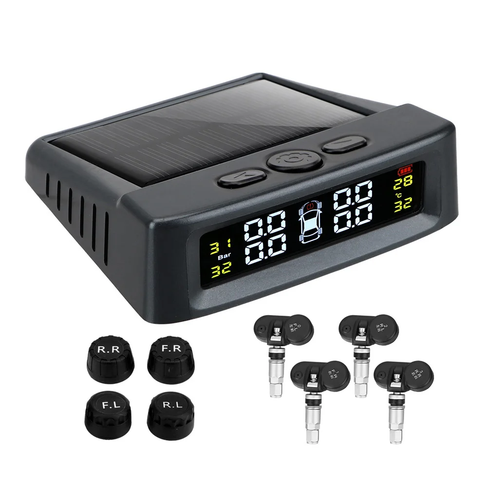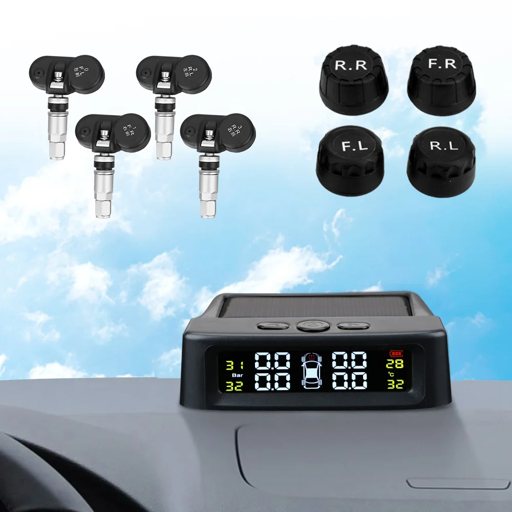Система контроля давления в шинах TPMS на солнечной батарее, внешнийВстроенный датчик давления в шинах автомобиля с 4 внешними датчиками