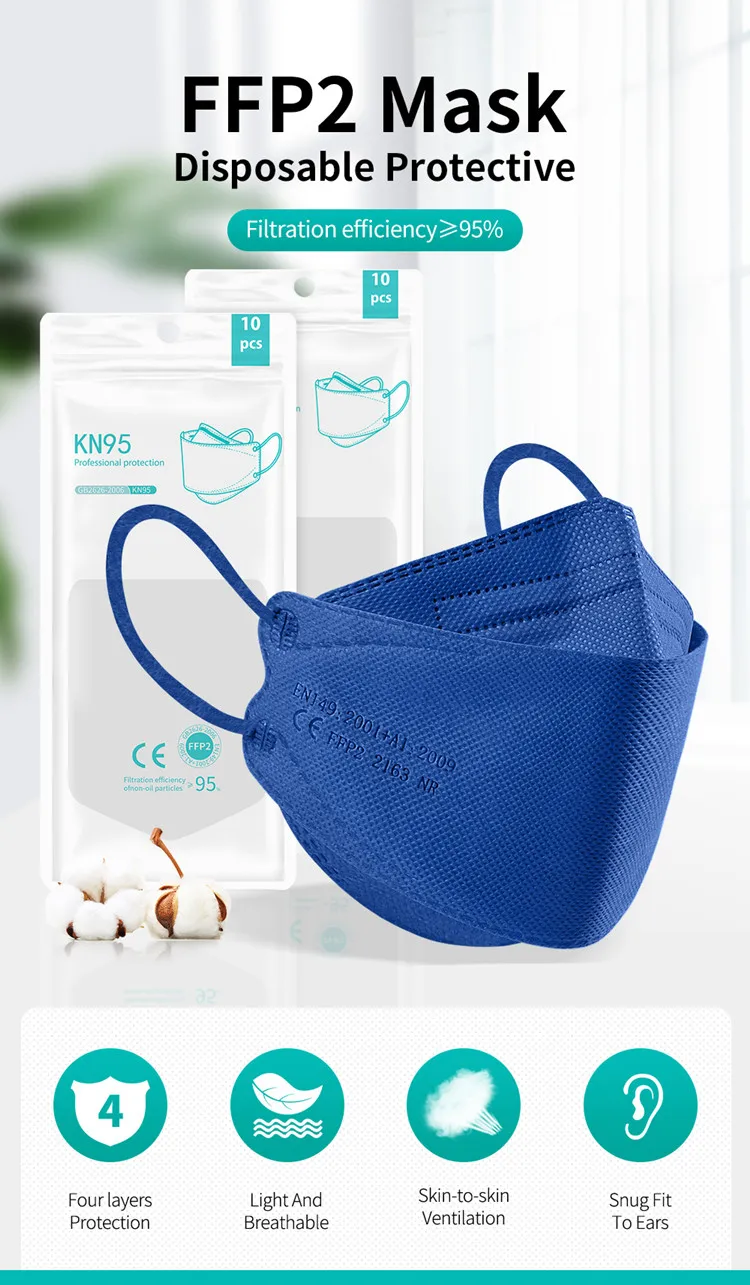 Маски для лица ffp2 kn95, 4 слоя, с фильтром, респиратор для взрослых fpp2, 5-30 шт.