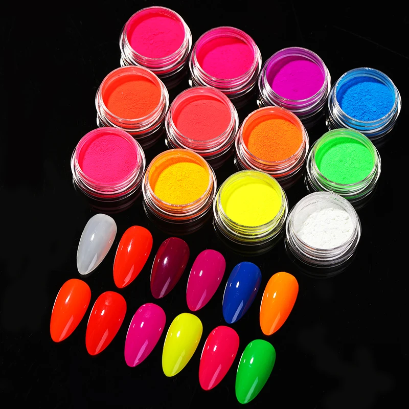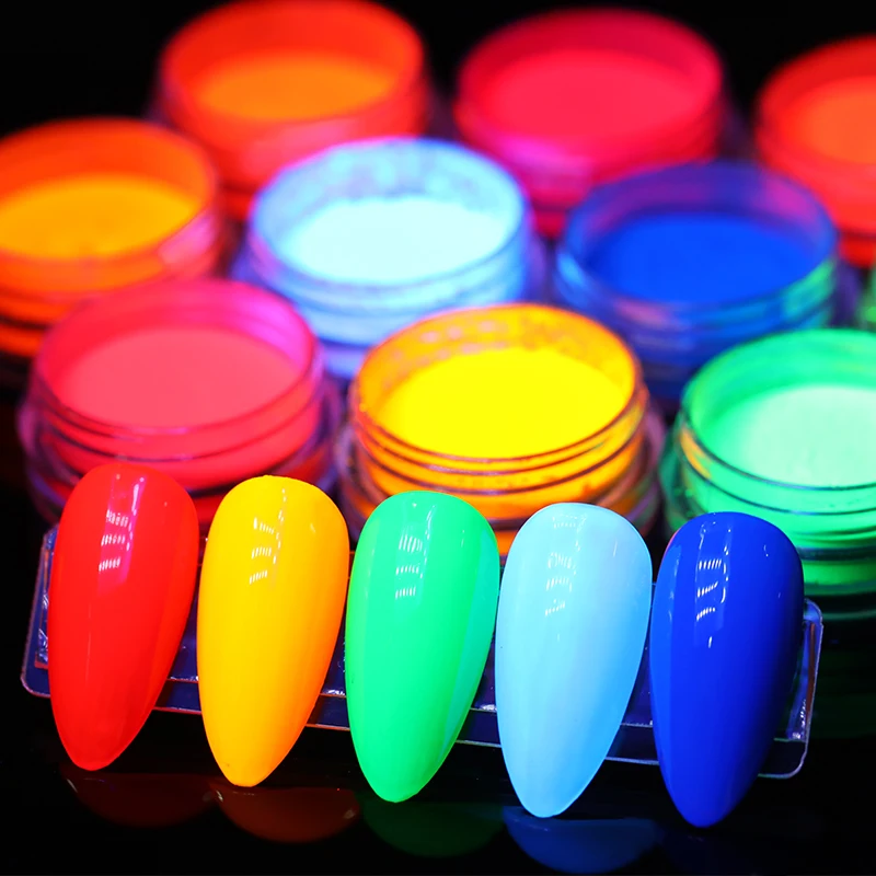 12 коробокнабор стойкий светится в темноте УФ реактивный флюренцентный порошок для ногтей пигмент для пыли светящиеся блестящие пудры украшения