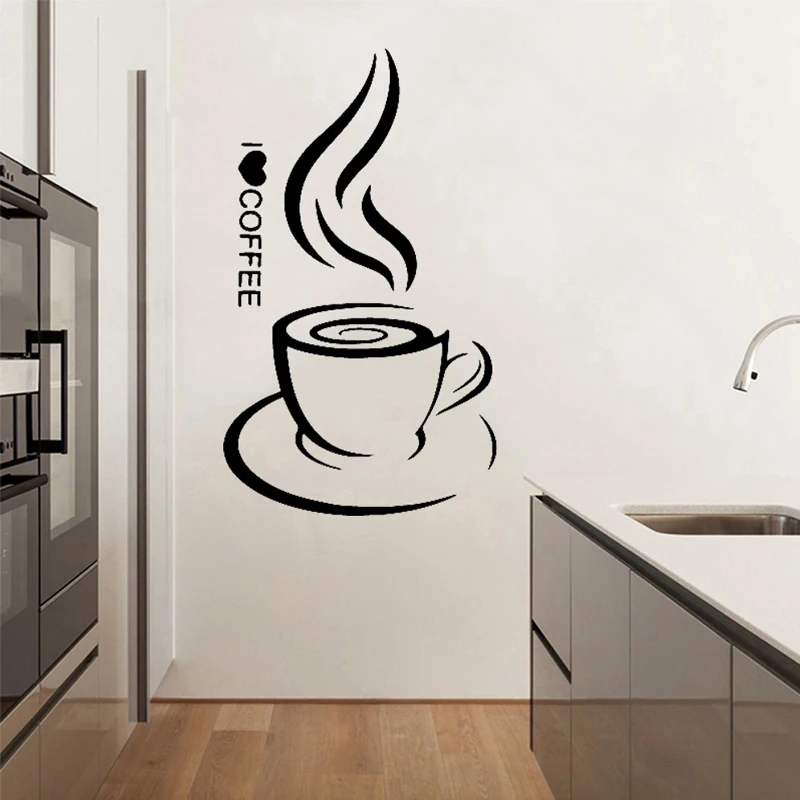 Настенная Наклейка для чашки, Виниловая наклейка для кафе, кухонный домашний декор, украшение для кофейни, окна, я люблю кофе, искусство, Настенная роспись, съемное сердце