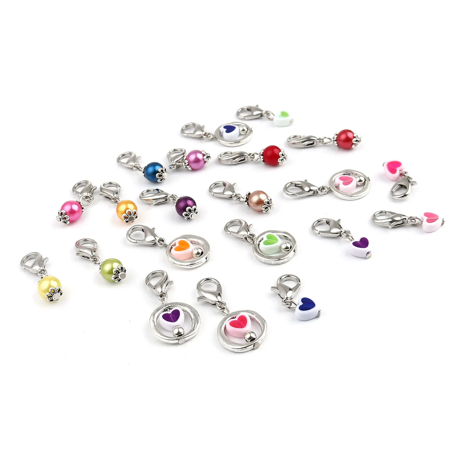 Doreen Box Подвески в форме сердца бусины из сплава и акрила маркеры для вязания шитья Омар застежка шаг колесо случайный цвет подвески 10-12 шт.