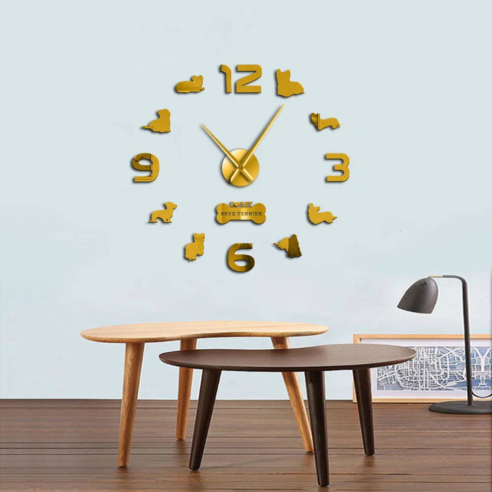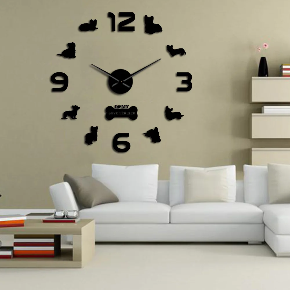 Скай терьер мультфильм DIY настенные часы домашний декор шотландская порода Basset Тихая собака с длинными волосами винтажные настенные часы, подарки