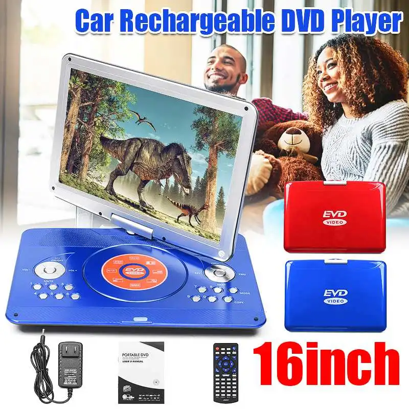 16-дюймовый DVD-плеер, поворотный экран, портативный мультимедийный плеер для дома, автомобильные видеоплееры, двойной динамик, MP3 MP4 VCD CD DVD-плеер