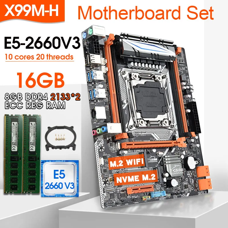 Комплект материнской платы X99 DDR4 DIMM с Xeon E5 2660 V3 LGA2011-3 ЦП 2*8 ГБ = 16 Гб PC4 ОЗУ 2133 МГц DDR4 память REG ECC ОЗУ nvme m.2