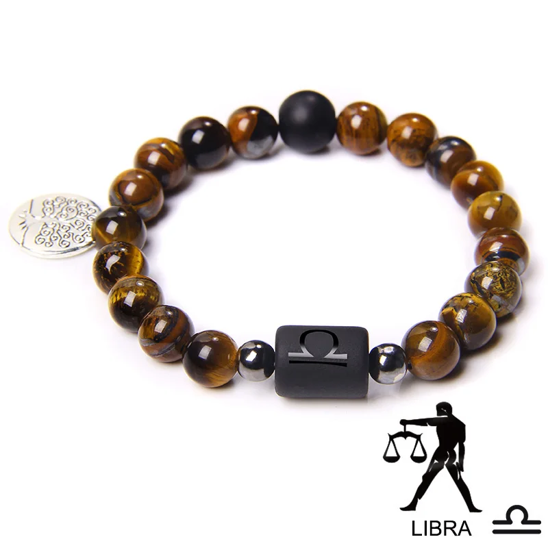 Браслет со знаком весы 12 созвездий зодиака очаровательный натуральный камень браслеты для женщин мужчин Исцеление Рейки Йога браслет для медитации
