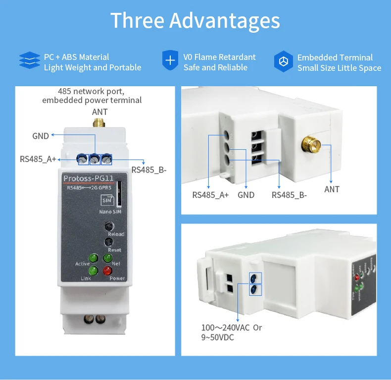 На din-рейку Серийный порт RS485 до 2G GSM GPRS конвертер GSM сервер последовательных устройств Protoss-PG11 AC110V 220V или DC Поддержка Modbus TCP к RTU