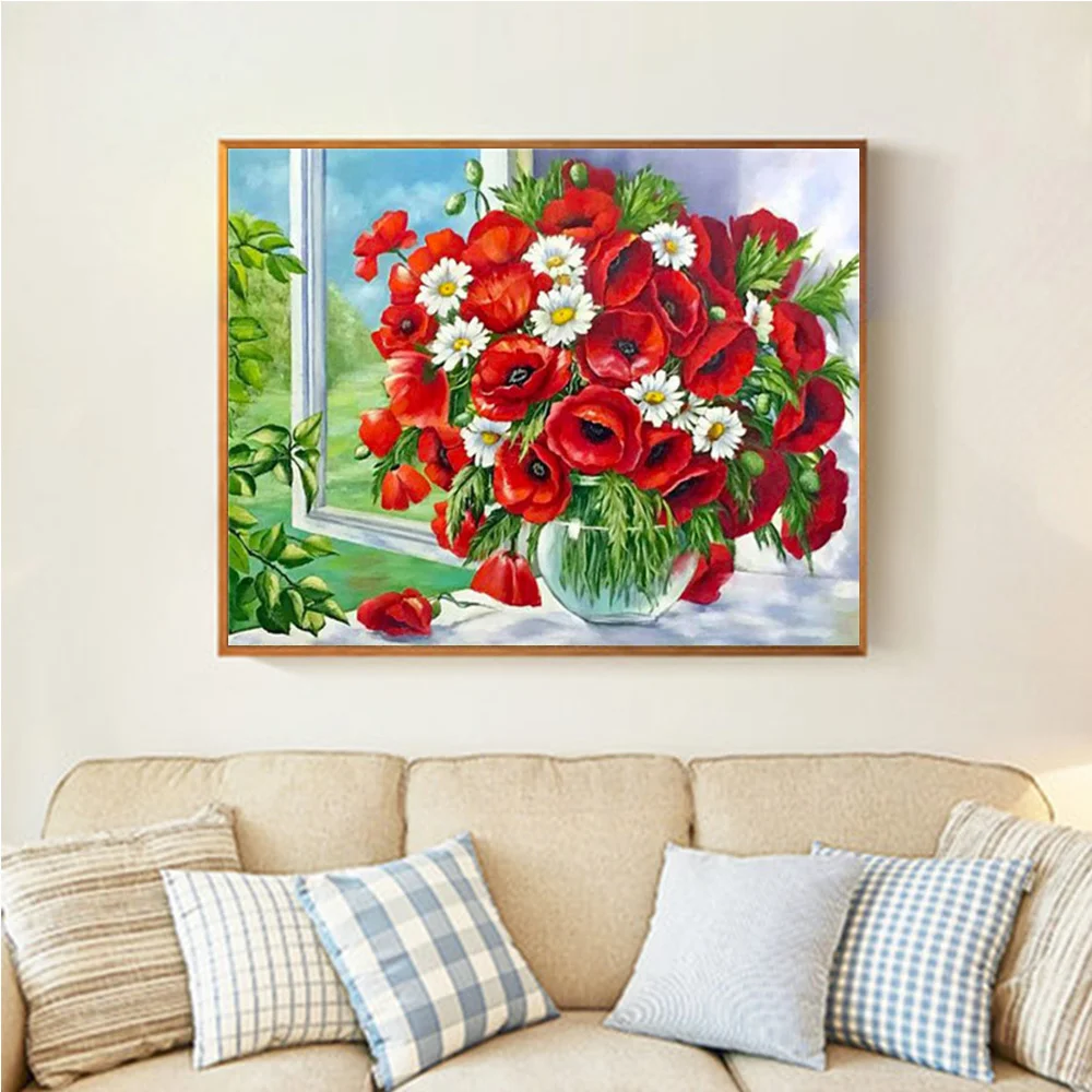 Алмазная живопись HUACAN, полноразмернаякруглая вышивка, Мак, цветы, вышивка крестиком, ручная работа, подарок