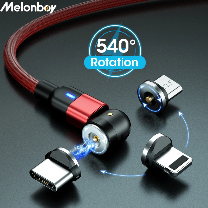 Магнитный кабель для зарядки, Micro USBType-C, 1 м, 2 м, 3 м, для Samsung, Xiaomi, вращающийся на 540 градусов
