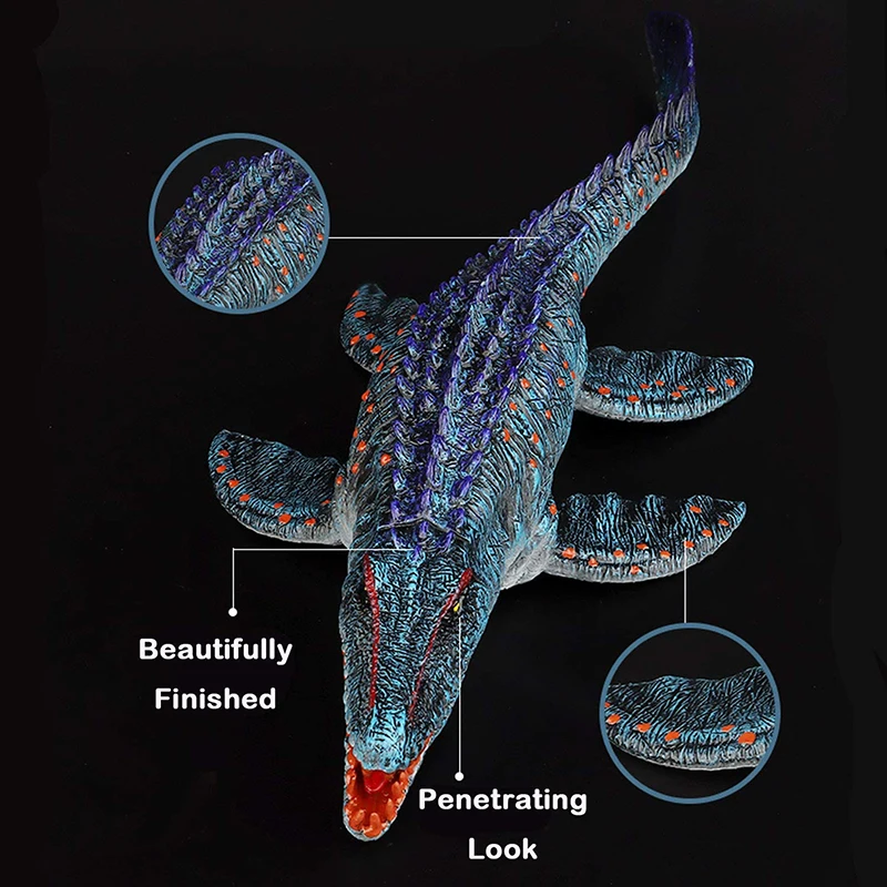 【Развивающие игрушки для животных 】 они отлично подходят для образовательных целей, творческих игр, вечерние сувениры, школьных проектов, детского душа и ремесел. Родители могут рассказать детям истории об информации о динозавре или жизни динозавров. Идеально подходит для обучения доисторическим видам, экологическому знанию и естественной истории. Мосазавр-амфибия, а также самый большой хищник в мезозойском океане.
