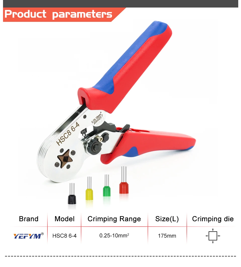 Набор обжимных инструментов HSC8 6-66-4, плоскогубцы для трубных клемм и многофункциональные плоскогубцы для зачистки проводов, черный набор инструментов YEFYM