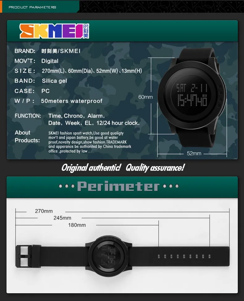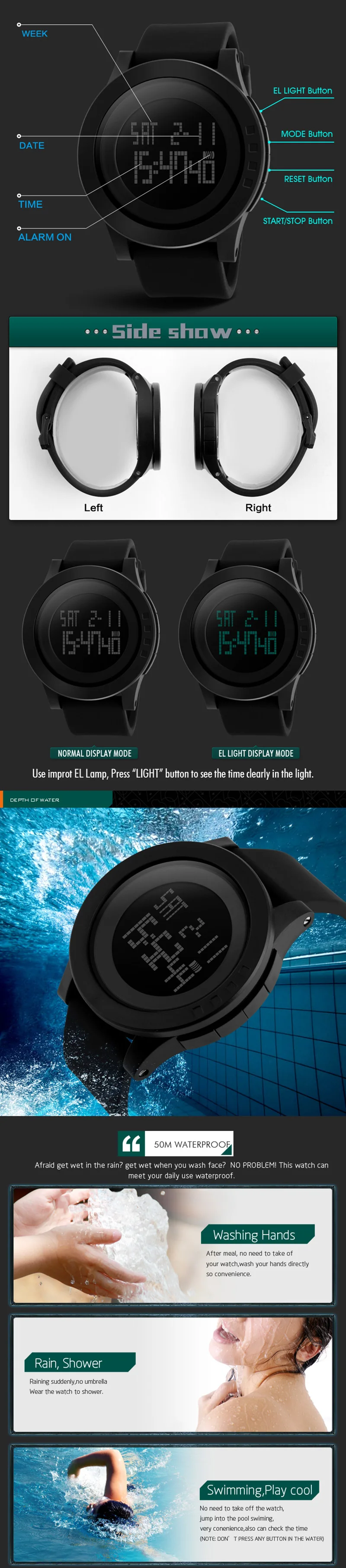 Часы наручные мужские электронные, светодиодные цифровые водонепроницаемые в стиле милитари, для спорта на открытом воздухе, SKMEI 1142
