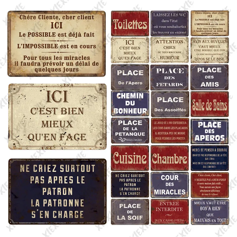 Металлическая винтажная французская Оловянная табличка в стиле ретро, декор для стен в стиле бара, паба, клуба, железная декоративная тарелка