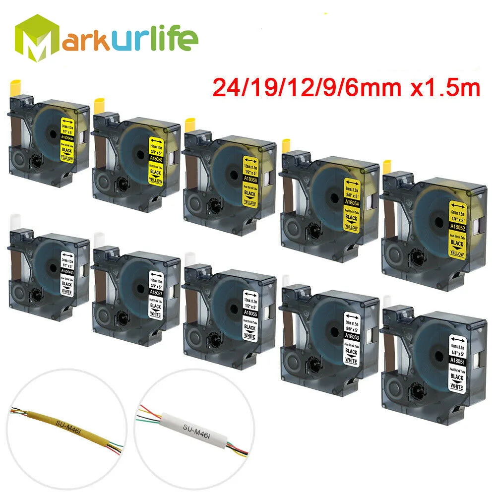 Термоусадочная лента для этикеток, 18055, 18053, 18056, совместима с производителем Этикеток DYMO Rhino 5200, 6000, 4200, 6500, 18051, 18054