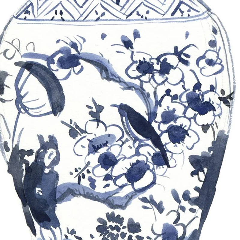 Oriental Vase Blue White Willow Style Porcelain Flower Jar Print