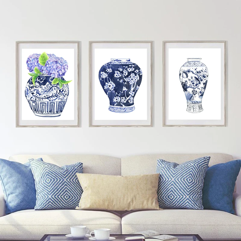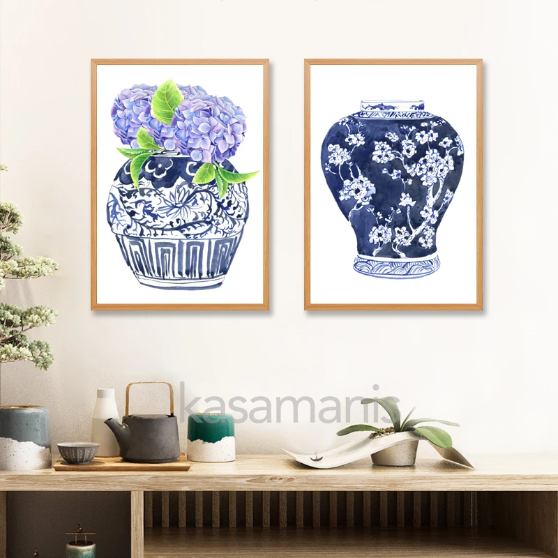 Chinoiserie Jars Hydrangea Art Painting Picture Home Decor