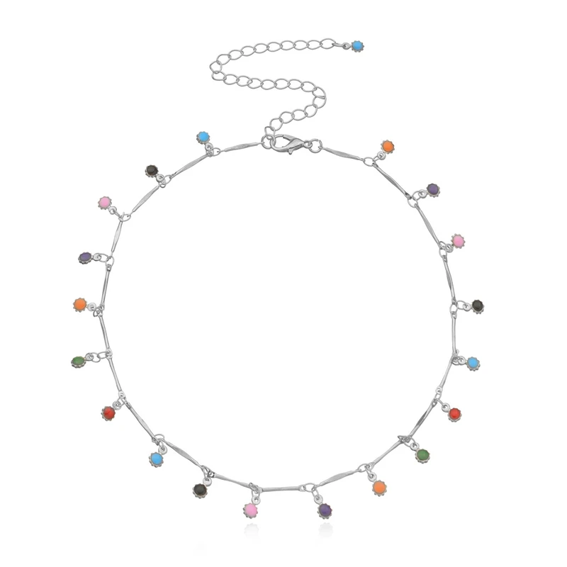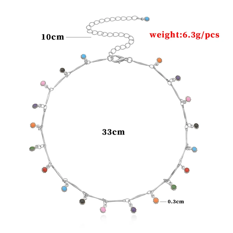Цепочка до ключицы Tocona, однослойная, с кулоном разноцветные хрус...