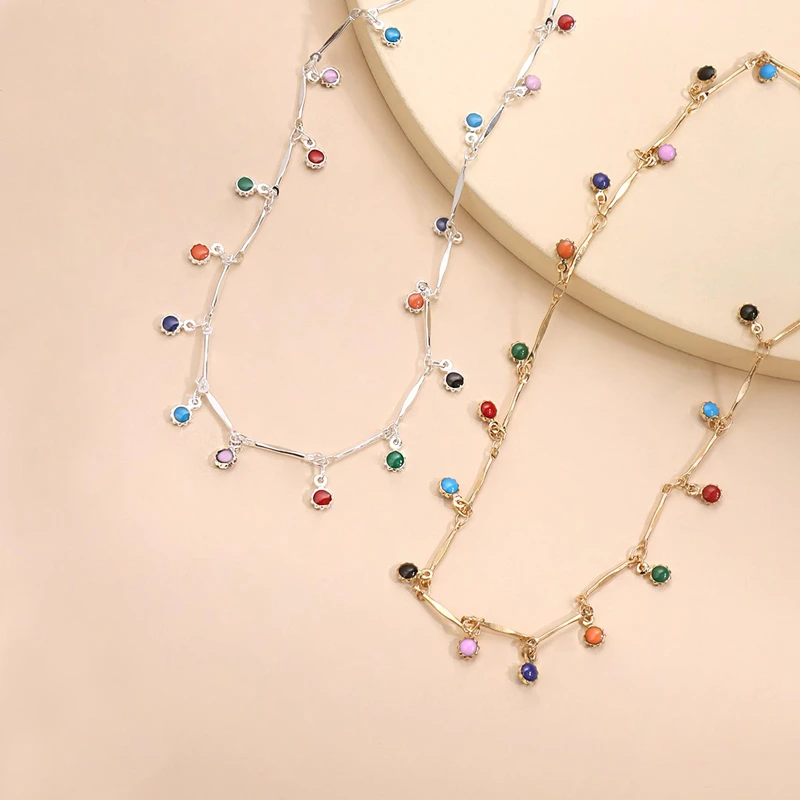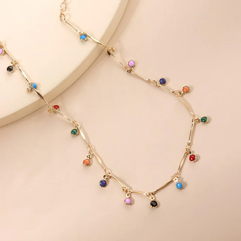 Kissme Цвет Фул конфеты Цвет маленькие круглые бусины ожерелья с кисточками для женщин; Цвет золотистый, серебристый Цвет бамбука цепочки чокеры, модное ювелирное изделие