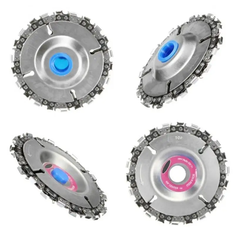 Шлифовальный диск цепная пила принимает мышцы работы резки, резьбы, удаления и скульптуры древесины, пластмассы, льда и твердой резины с их скоростью и маневренности. Лезвие цепной пилы удерживается между двумя стальными пластинами, что обеспечивает надежное сцепление для резьбы. Независимо от зерна или узлов лезвие легко прорезается через материал для пользователя.