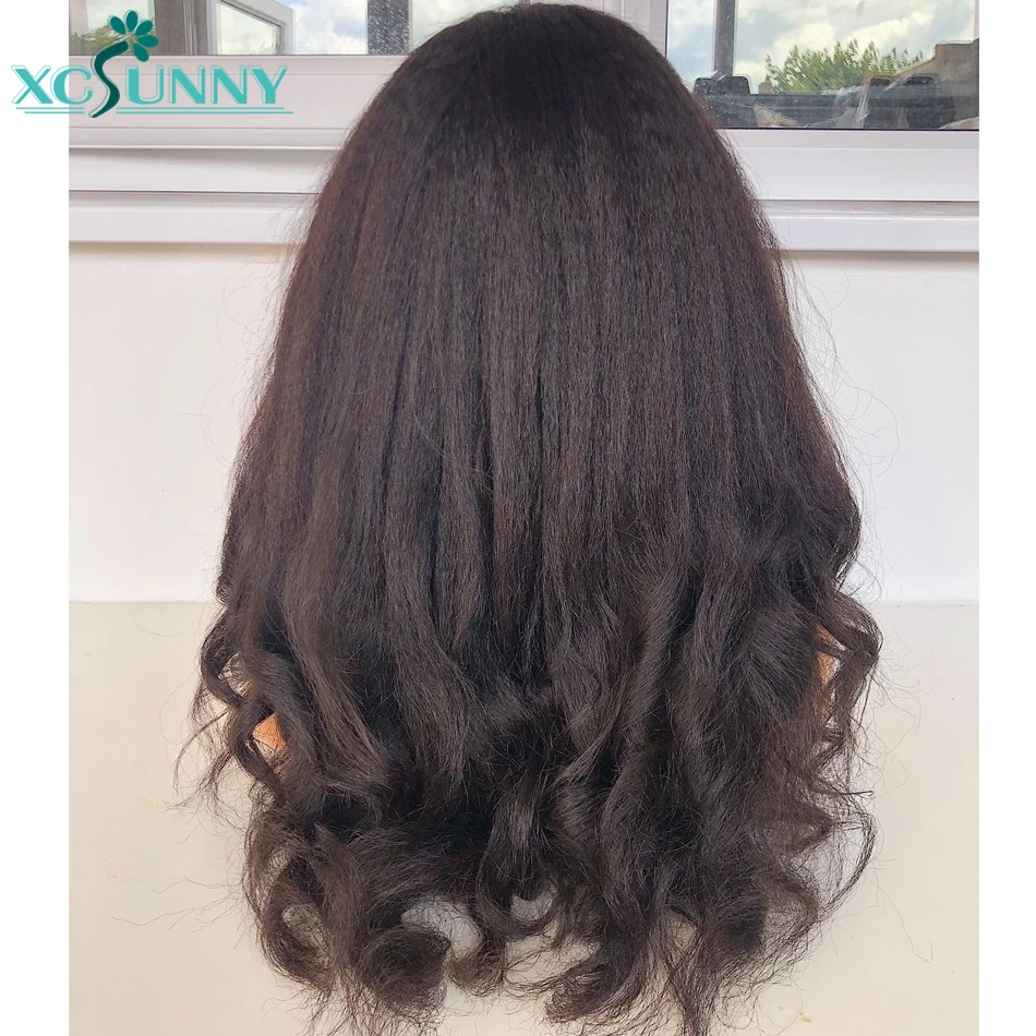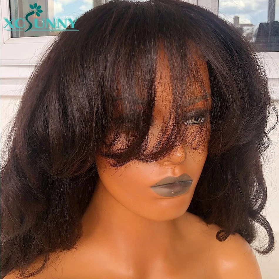 Челка парик человеческие бразильские волосы полностью машинное изготовление Yaki волнистые человеческие волосы парик с челкой Реми 24 дюйма 180 плотность для женщин xcsunny