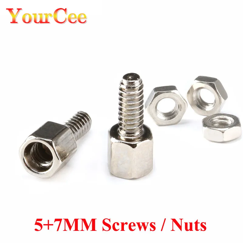 Распорные винты с шестигранной головкой, 5 + 7 мм, 100 шт., гайки 5 мм + 7 мм для последовательного разъема D-Sub VGA DB9 DB15 DB25 RS232 COM, 200 шт.