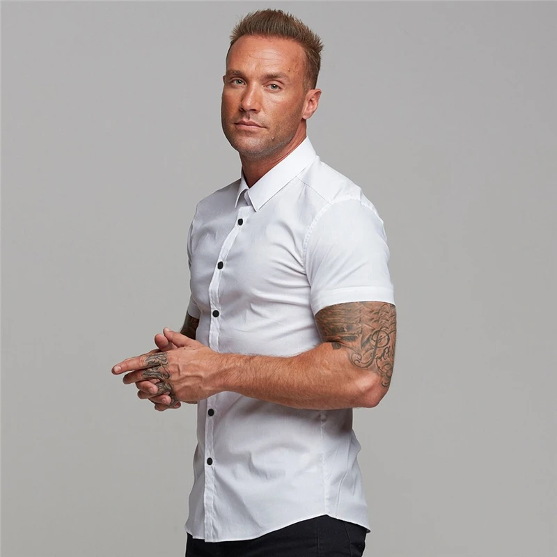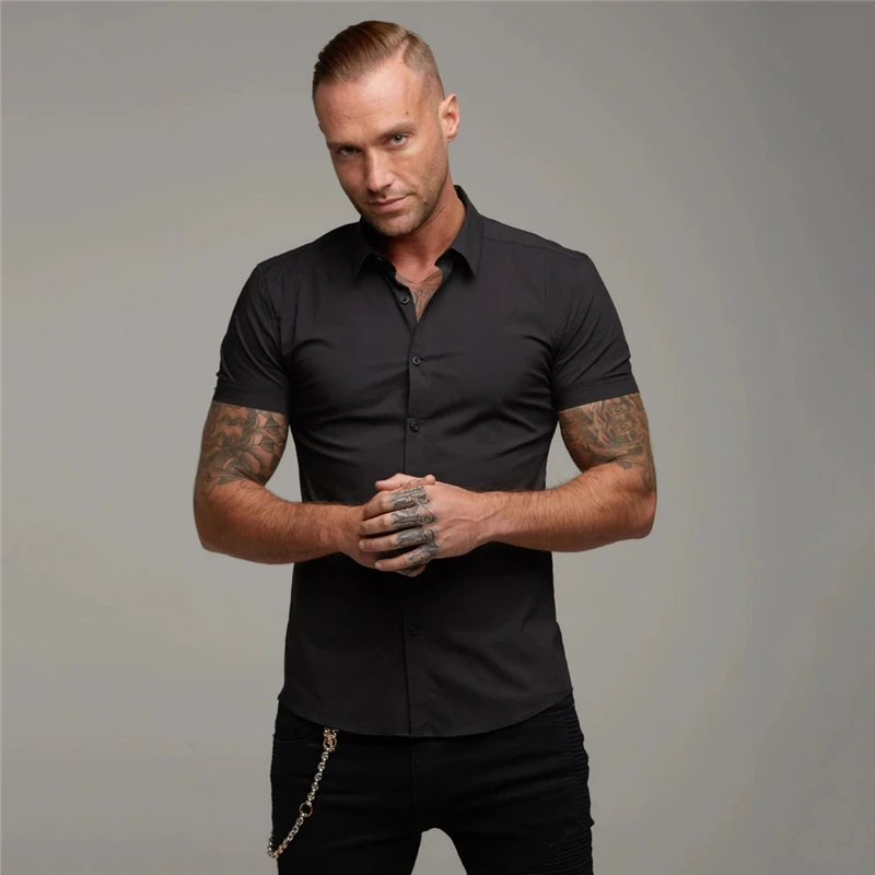 Рубашка мужская для бега, летняя деловая рубашка с коротким рукавом...