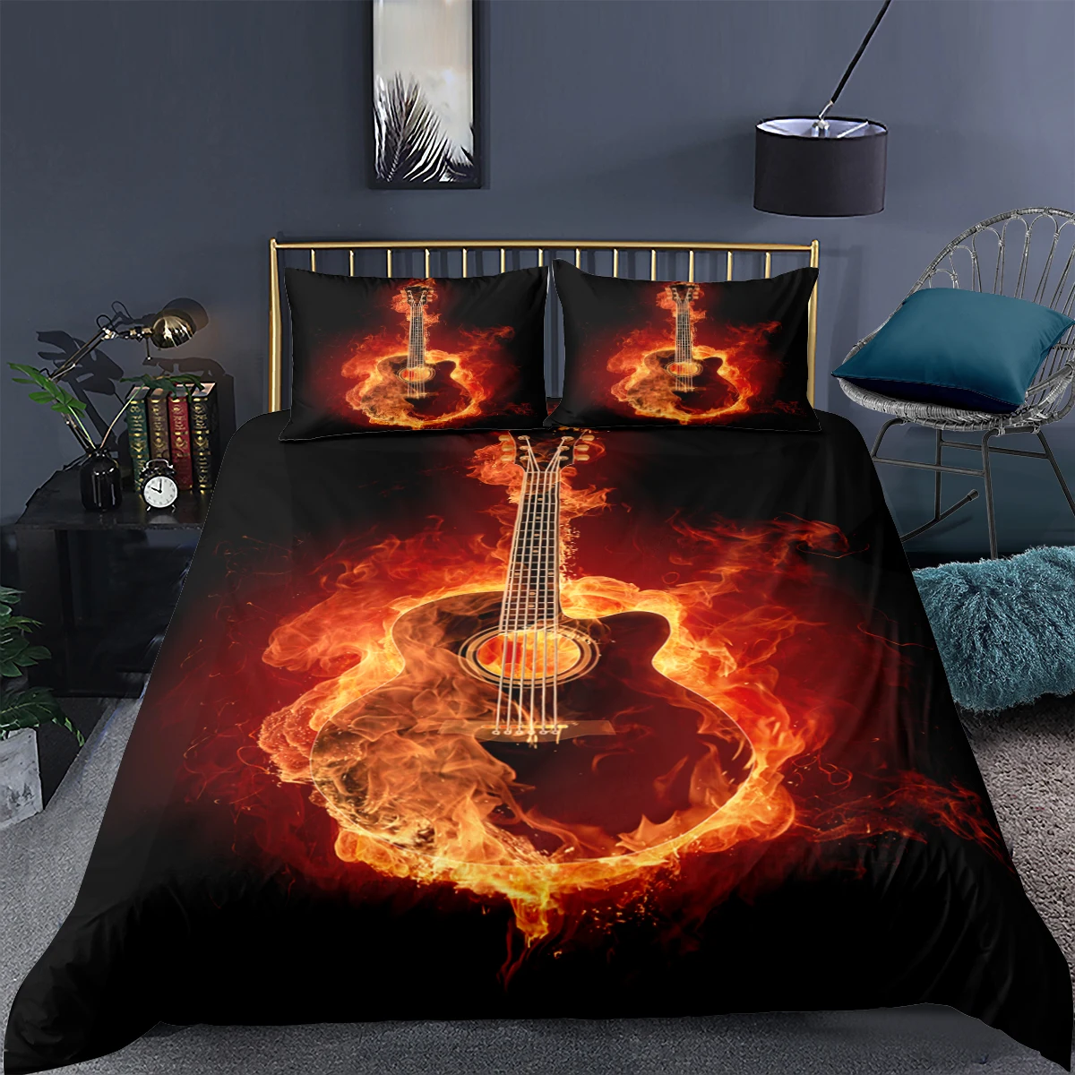 Комплект постельного белья черного цвета с 3D изображением страстной гитары, пододеяльник, мягкий пододеяльник, одинарный, двойной, полный, двуспальный, Королевский размер, комплекты постельного белья