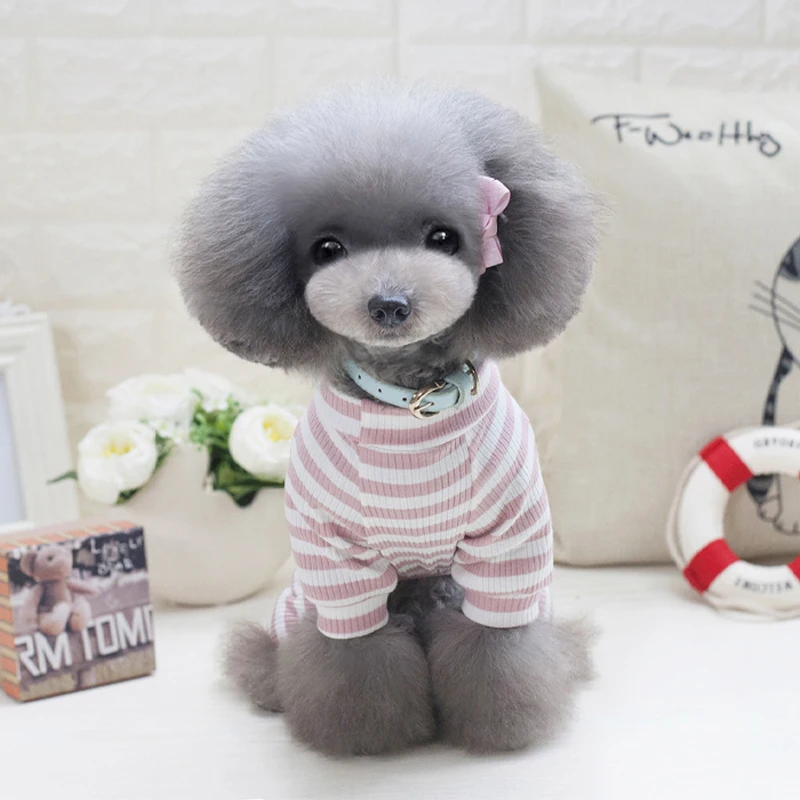 Четыре-комбинезон с длинными рукавами для собак из хлопка с мультяшными рисунками свитер для щенка детские комбинезоны в полоску Собака пижамы футболка для чихуахуа ropa para пер