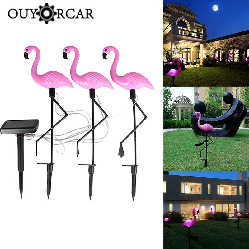 Лампа для газона с фламинго, 3 шт., светодиодный садовый светильник на солнечной батарее, водонепроницаемые Уличные светодиодные фонарики на солнечной батарее для украшения сада, вечеринок