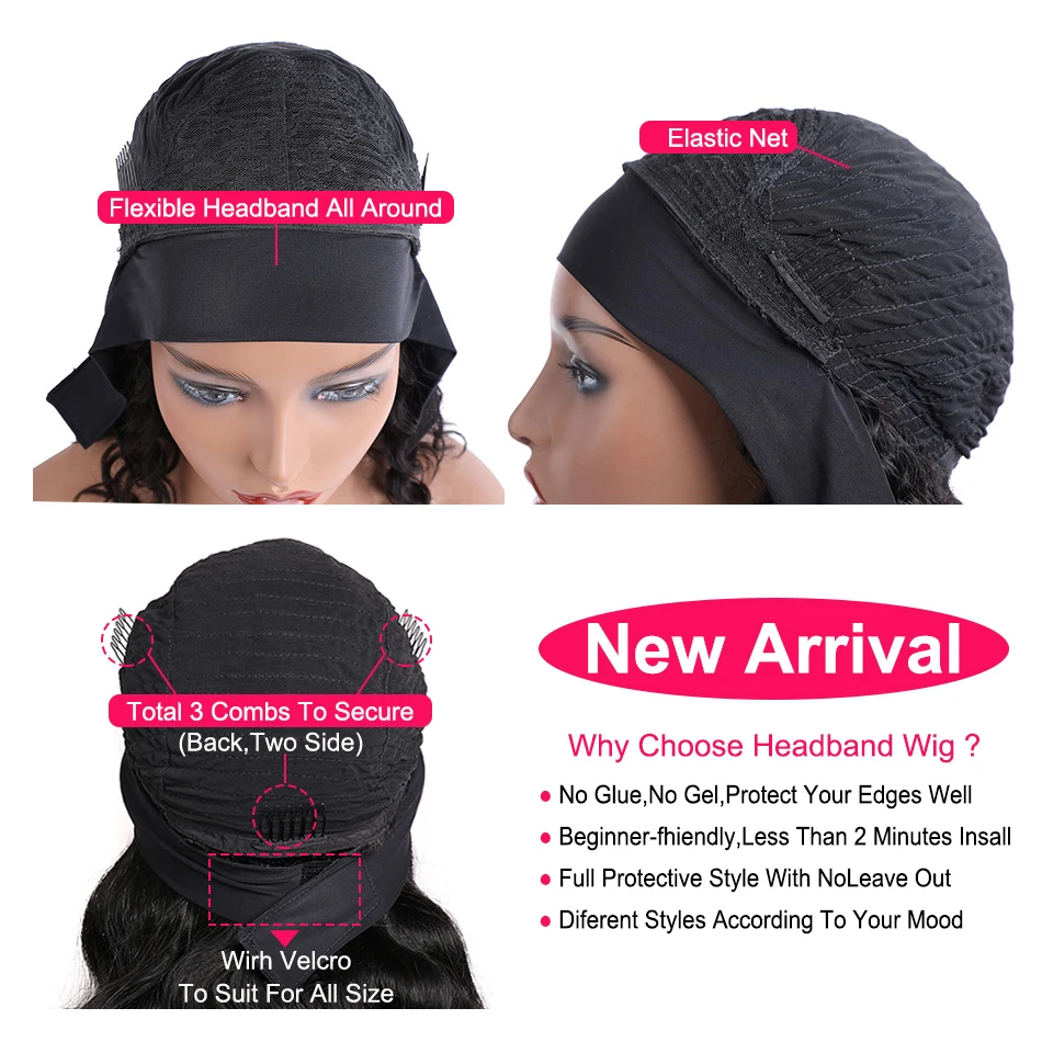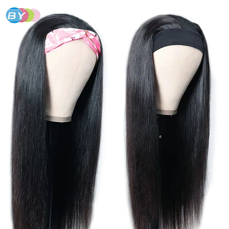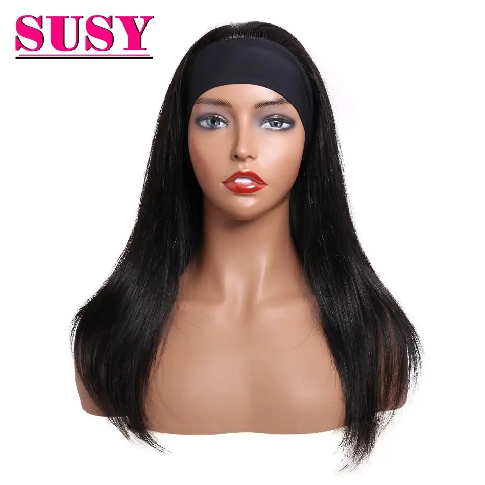 Парик с прямыми волосами Bone, головная повязка, парики без клея, парики с неповрежденными волосами для черных женщин, 180% простой в использовании парик с черной головной повязкой
