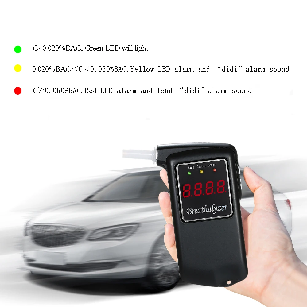 Особенности:Используйте высокоточный и чувствительный полупроводниковый датчик, быстрый ответ и возобновление.Контрольная оценка Алкотестер регулируется с 5 единицами общего использования (% BAC, g/l, mg/L, mg/100ml, ‰BAC).Четкий ЖК-цифровой дисплей с 3 светодиодный индикатор.Громкий сигнал тревоги включается, как только концентрация алкоголя выше, чем значение сигнала тревоги.Автоматическое выключение, энергосбережение.Легко носить с собой, доступно для встреч друзей, встреч в компании, воссоединения семьи, куда бы вы ни отправились, не ездить после питья.Характеристики:Цвет: черныйМатериал: АБС-пластикДиапазон: 0,000-0.199% BAC, 0,000-1,990 ‰BAC, 0,000-1,990 г/л, 0,000-0,995 мг/л (BrAC), 0,00-199 мг/100 млТревога: 0.050% BAC, 0,500 ‰BAC, 0,500g/l, 0,250 мг/л (BrAC), 50 мг/100 млТочность: ± 0.010% BAC, ± 0,100 ‰BAC, ± 0,05, поддерживающие шкалу мг/L, ± 0,100 г/л, ± 10 мгВремя отклика: 5sВремя разогрева: 20sДисплей: трубка Nixie и 3 ЖК-светильник с напоминаниемРабочий электрический ток: ≤ 120 мАТемпература окружающей среды: -10 ~ 50 ℃Питание: 3*1,5 V щелочные батареи типа AAA (не входят в комплект поставки)Размер изделия: 125*68*24 мм/4,92*2,68 * 0.94inТовар Вес: 75 г/2,6 ozПосылка Вес: 130g/6,6 ozПосылка Размеры: 14,5*11*4,5 см/5,71*4,33 * 1.77inПосылка:1 * тестер алкоголя10 * мундштук1 * Руководство по эксплуатации (на английском языке)Примечание:Для того, чтобы сделать результаты теста точно, пожалуйста, проверьте спиртовой Алкотестер через 20 минут после питья; Пожалуйста, подождите еще 3 минуты, прежде чем начать Следующий тест, чтобы получить точный результат тестирования.