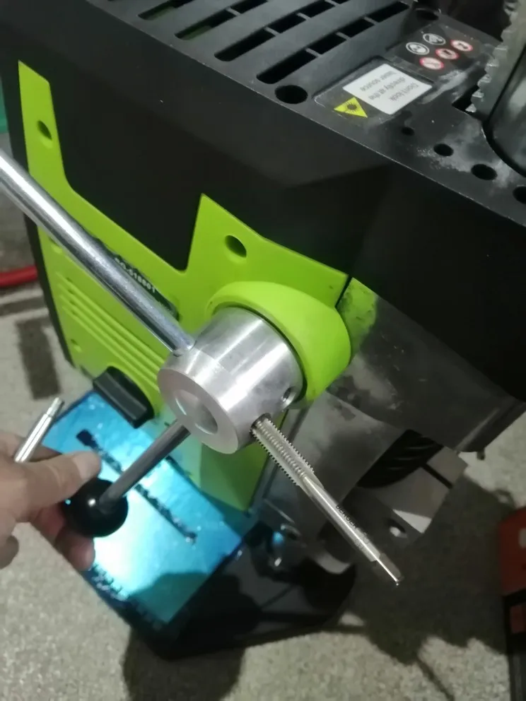 Мощность движка в реале 500ватт и уже при первом запуске был запашок паленым.лазерная подсветка центра бесполезная хрень.,центр смещается при подъёме самой сверлильной головки. Сам редуктор сухой, на минимальных оборотах хрустит под нагрузкой. Снять его не мог сидит на 3 винтах и на фиксаторе резьбы. Снимал движок и через это отверстие добавил смазку. Литье качественное но тонкие стенки и ребра жёсткости. Брал за 14 000р. Полный хлам . Планировал собрать фрезер но движок не вывезет придётся колхозить.