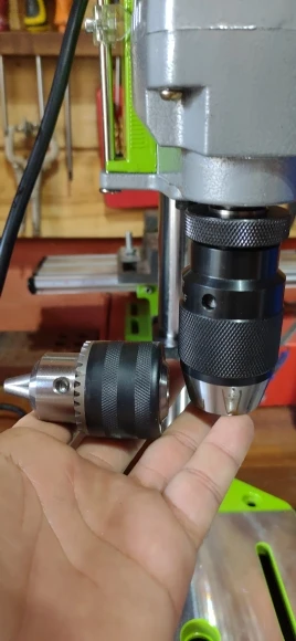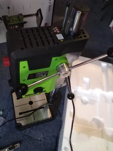 Хорошая дрель, за исключением центрирования полюса, патрон не был отцентрирован в отверстии основания, мне пришлось сделать подкладку и повозиться, это было немного менее хорошо. В противном случае продукт работает как положено.